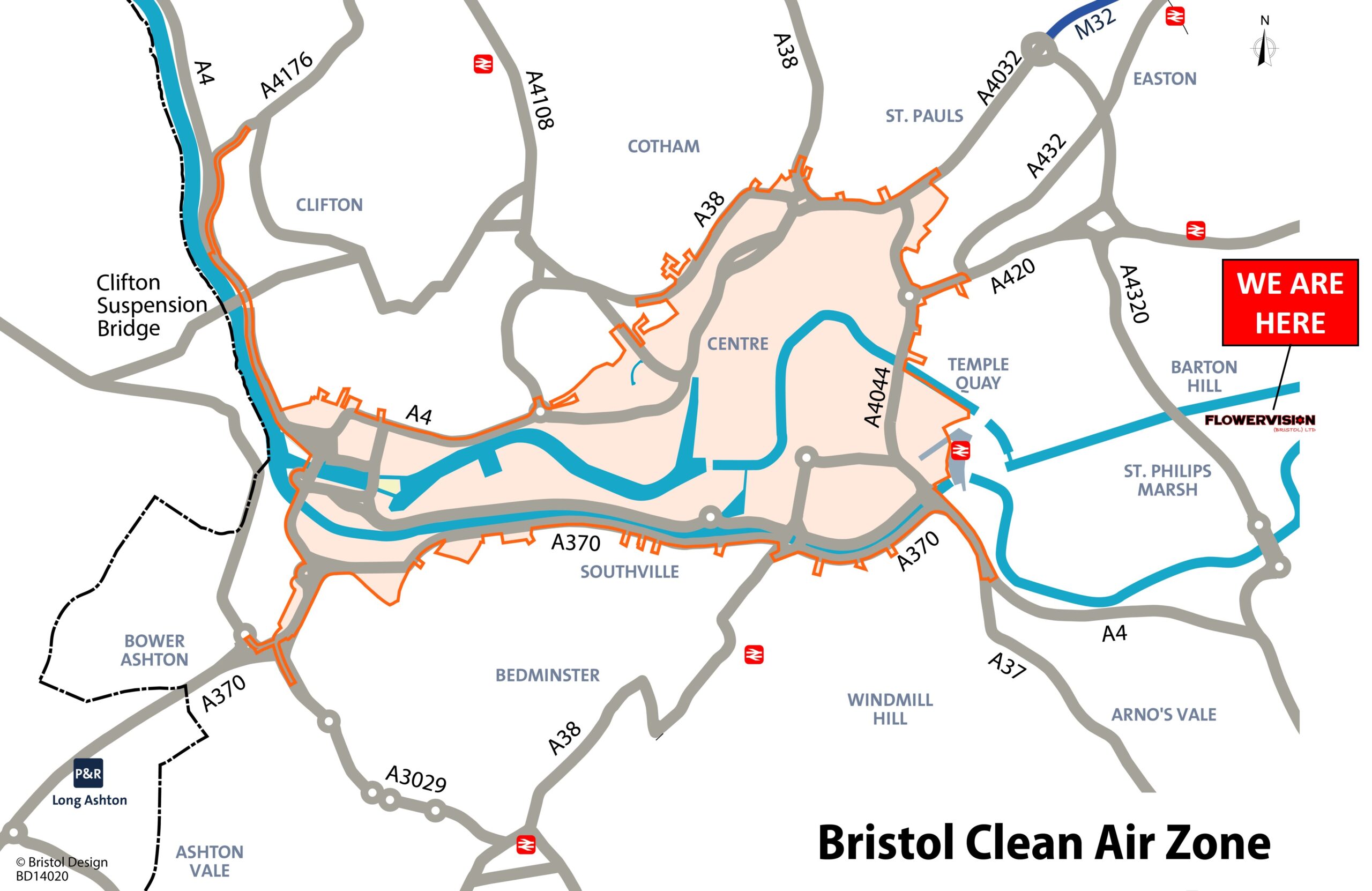Flowervision Bristol is NOT within the CAZ, but it is close, and therefore some customers might have to adjust their route when travelling to the cash & carry if your vehicle does not meet the emission standards or you do not want to pay the charges.